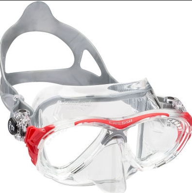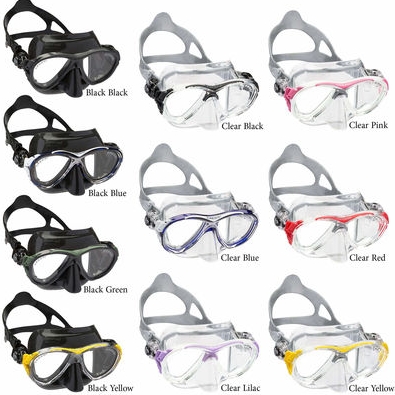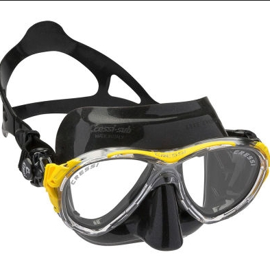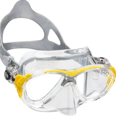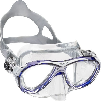 Cressi'nin ters damla şeklinde olan mercekler, olağanüstü bir görüş alanı için gözlere yakın yerleştirilir ve Kristal Silikon etek, renk değişikliği ve buğulanmaya karşı koyarken mükemmel ışık geçirgenliği sağlar.