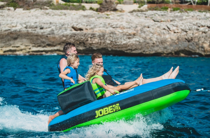 Jobe Swath Towable 4P (4 kişilik su towable / ringo), su üzerinde eğlenceyi ve aktiviteyi maksimuma çıkarmak için tasarlanmış yüksek dayanımlı bir towable tubedir. Ürün hem aileler hem de arkadaş gruplarıyla birlikte kullanılmak için idealdir ve tekneden çekilerek göl, deniz veya nehir üzerinde keyifli sürüşler sağlar.